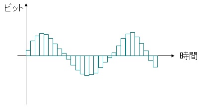 デジタルでは縦軸をビットで表します。CD-DAの仕様では量子化ビット数がこれに該当します。