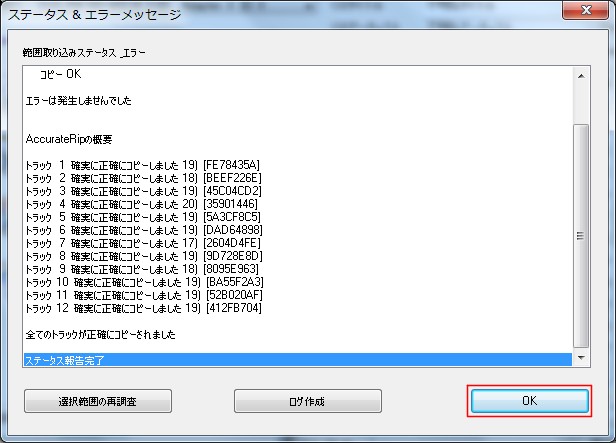特に今回はCDを純粋にコピーするだけですので、曲名等は取得・入力しません。