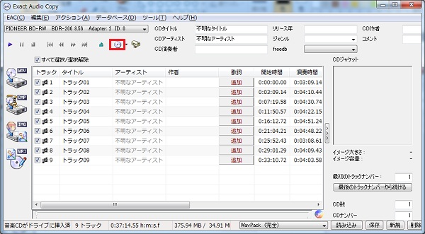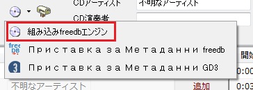 ちなみにCDのアイコンになっていない場合は、「組み込みfreedbエンジン」を選択してください。