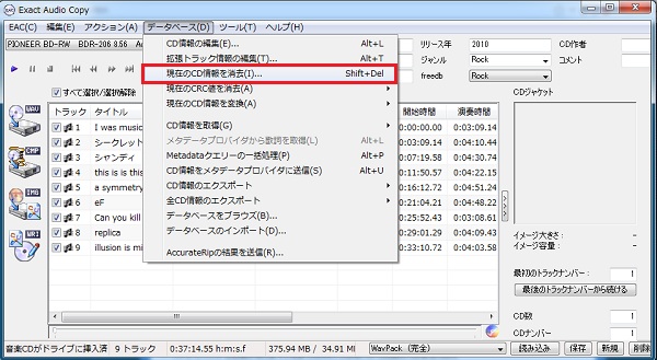 「データベース」ー「現在のCD情報を消去」でリセットすることが出来ます。