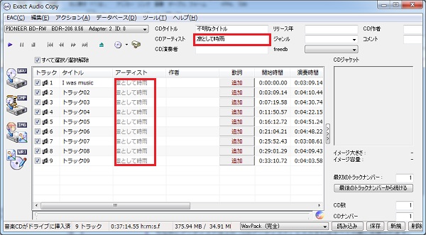 ちなみにアーティストは上の「CDアーティスト」に入力すればすべての曲に反映されます。