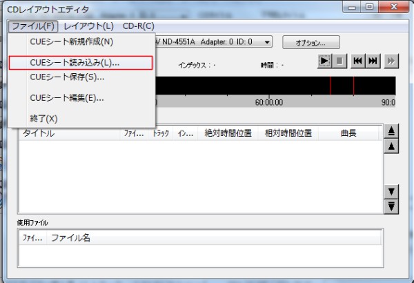 CDレイアウトエディッタが開きますので「ファイル」−「CUEシート読み込み」をクリックします。