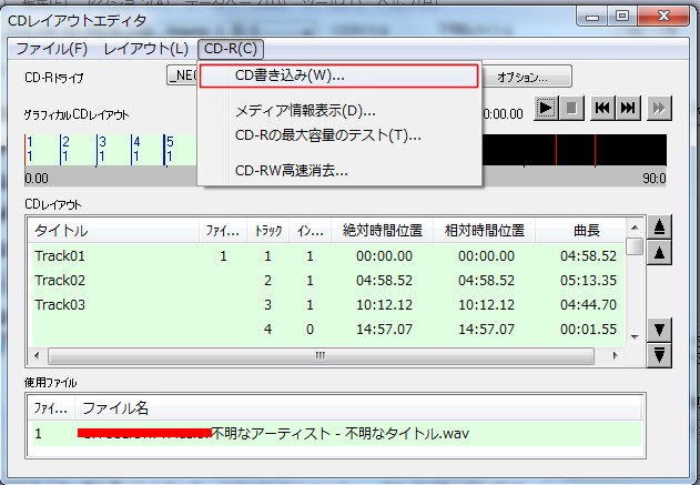 と、いってもほとんどの場合がWAVですのでその他の形式を焼きたい場合はWAVに変換、