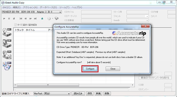 ここからはAccurateRipを使用しないで手動でオフセットを設定する方法を