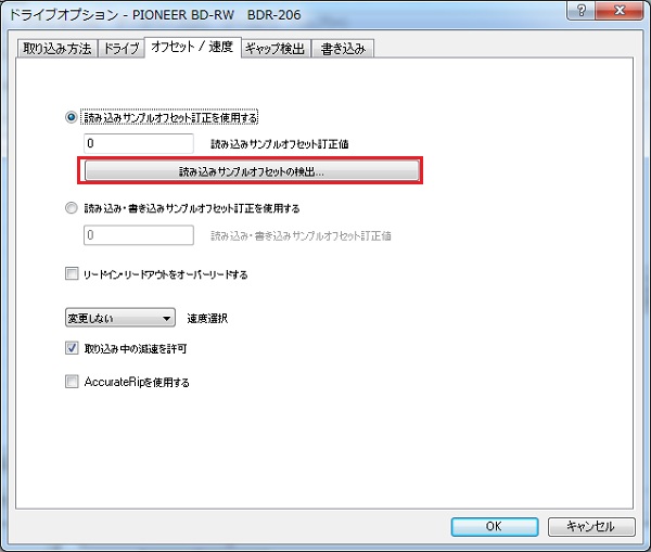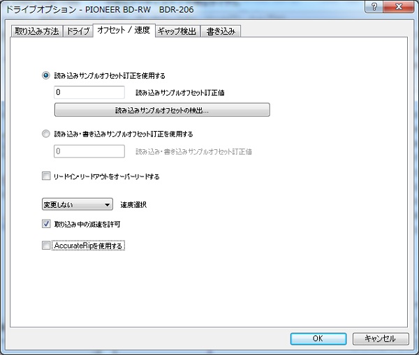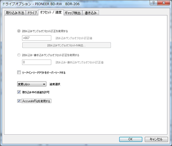 これで設定は完了です。先ほどのCD-R実験室さんの読み込みサンプルオフセットとも