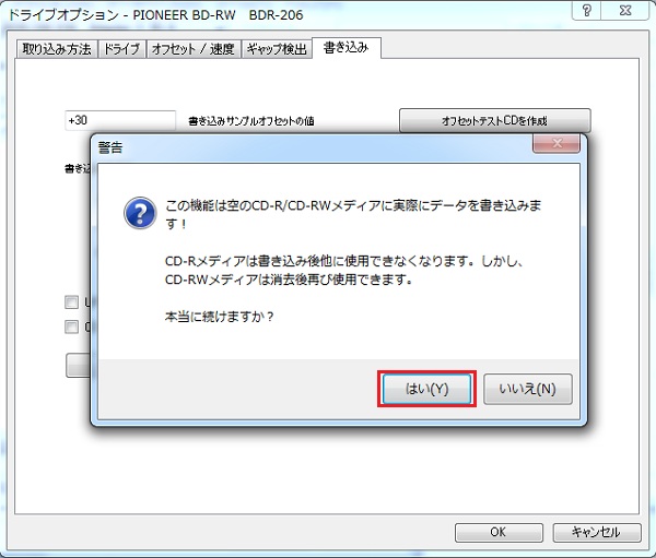これでオフセットテストCDの作成は終了です。このCDを使って読み込みオフセットを求めます。