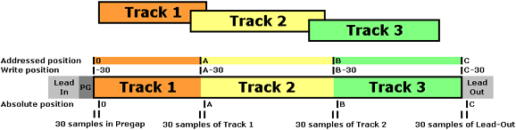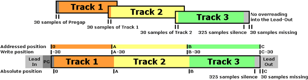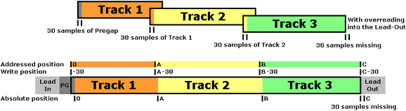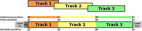 上の例のように3トラックをCDに書き込もうとすると、実際には次のような状況になります。