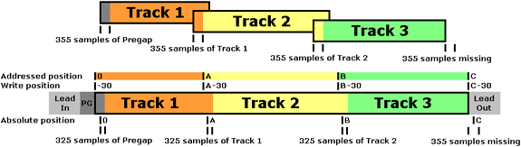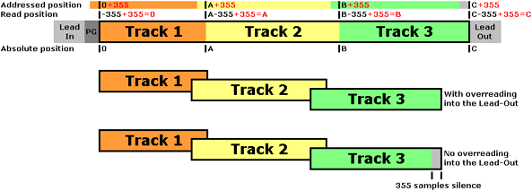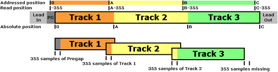 読み出す時にCDの最後の355サンプルを失います。プラスのオフセットでも同じことがいえます。
