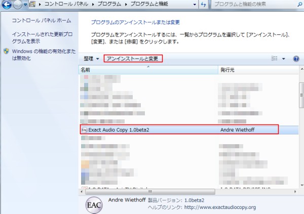 最近のEACはインストール形式なので、普通のソフトウェアと同様に、