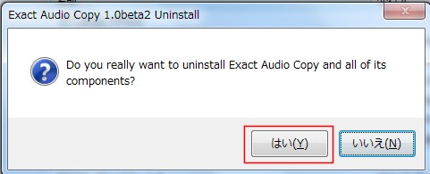 本当にアンインストールするかどうかの確認メッセージがでますので「はい」をクリックします。