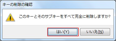 確認されますので「はい」をクリックして削除します。