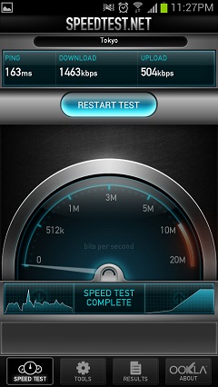 速度が出すぎでこのテストだけで4MB消費しました(笑)←21円くらい?
