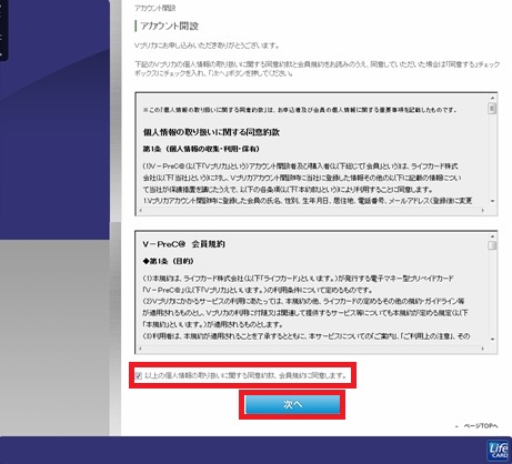 規約を熟読し、同意にチェックを入れて次へをクリックします。