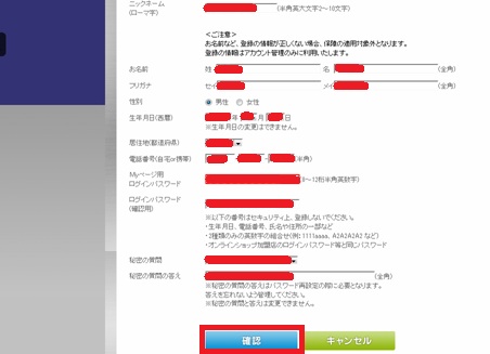 個人情報を正しく入力します。トップシークレットなのでw隠してあります。