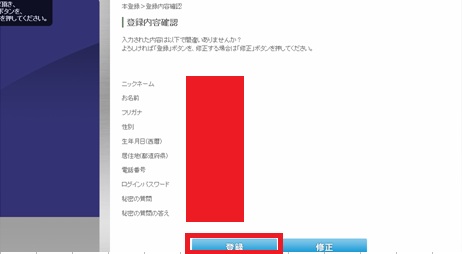 内容を確認して登録をクリックします。