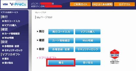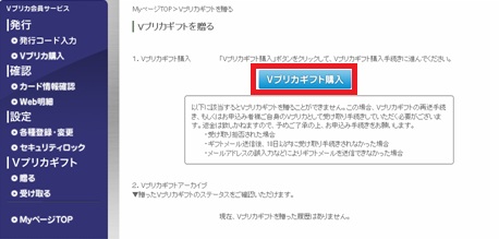 Vプリカギフト購入をクリックします。
