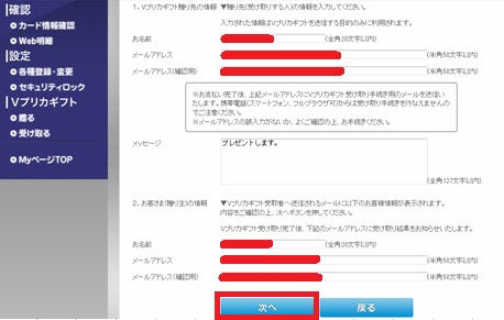 入金したらメールアドレス(ギフト受け取り用)のチェックを行います。