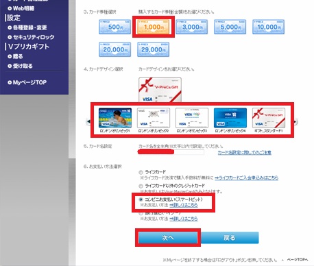 ここでは1000円のVプリカを購入したいと思います。