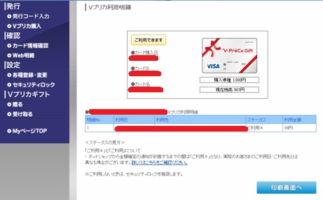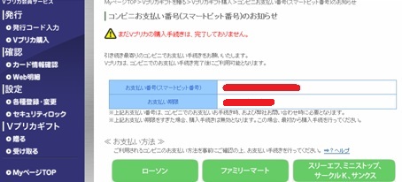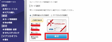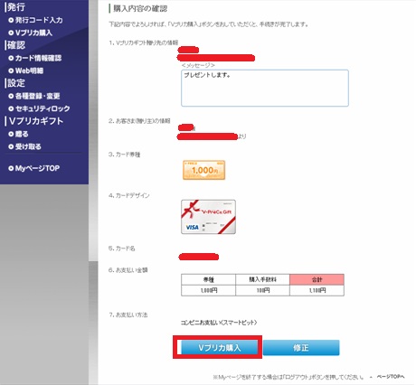 確認してVプリカ購入をクリックします。購入手数料に100円かかるので注意です。