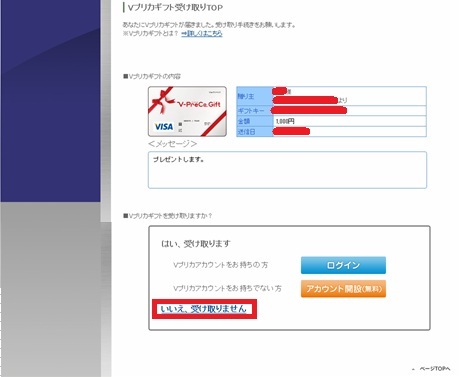 「いいえ、受け取りません」をクリックします。