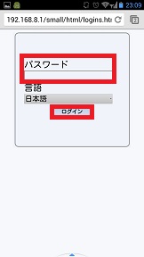 ブラウザを開いてアドレス欄に192.168.8.1と入力します。すると上記のようなログイン画面になるのでパスワードの欄に「admin」と入力して、ログインをタップします。