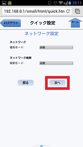 ネットワーク設定はそのまま自動にしておきます。「次へ」をタップします。