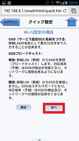Wi-Fi設定の説明です。「次へ」をタップします。