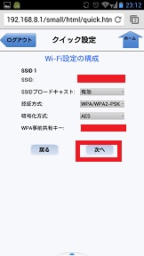 SSIDとWPA事前共有キーを設定します。好きなもので結構ですが、周りの人からも見えるSSIDなので気をつけましょう(笑)また共有キーもセキュリティ上重要なものなので注意して付けましょう。