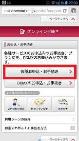 スクロールして各種お申し込み・お手続きをタップします。 |