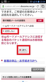 特に確認メールは不要なので送信しないを選び、「次へ」をタップします。 |
