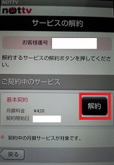 はい。解約をタップします。これで解約と書いたボタン3回目です。 |