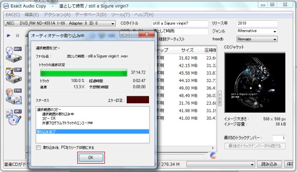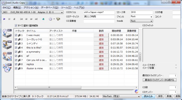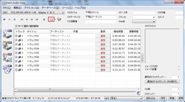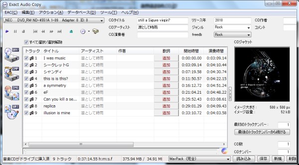 ここまでで、CD情報が適用され、CDジャケットも表示されていると思います。