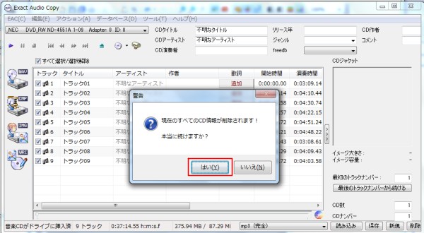 まだ、CD情報等も読み込んでいないのでこのまま続けます。「はい」をクリックします。