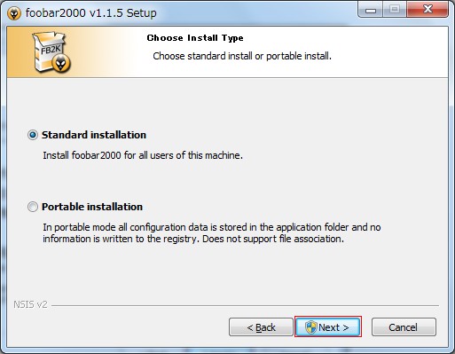標準インストールか、ポータブルインストール(レジストリ書き込みなし)かを