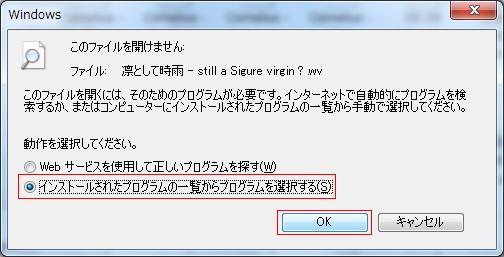 プログラムの選択画面が出ると思いますので、foobar2000を選択して「OK」をクリックします。