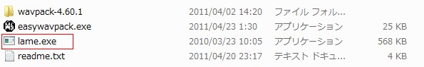こんな感じです。lame解凍時に出てきたほかのファイルは使用しませんので