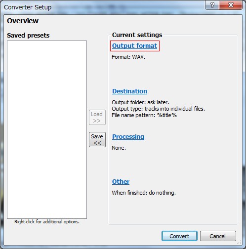 Converter Setupが開きますので、Output formatをクリックします。