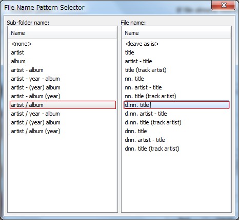 上記の設定の場合、アーティストフォルダの中にアルバムのフォルダを作り、