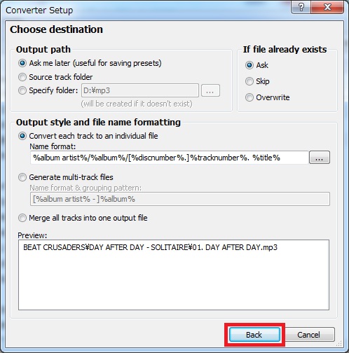WavPackからfoobar2000を使ってMP3へ変換