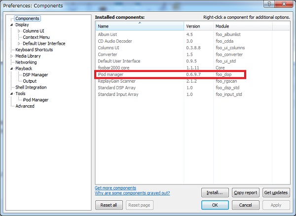 foobar2000のコンポーネント(追加できる機能)のひとつであるiPod managerを