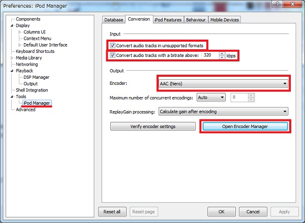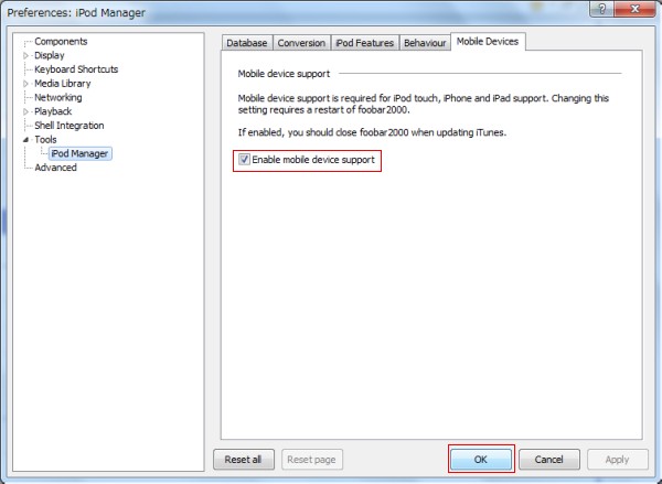 foobar2000のコンポーネント iPod managerを使う