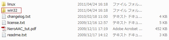 こんな感じのファイルが出てきます。Win32フォルダにエンコーダがあります。