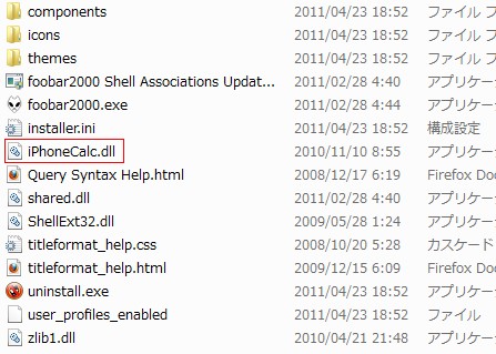 iPhoneCalc libraryをダウンロードして解凍したものをfoobar2000の