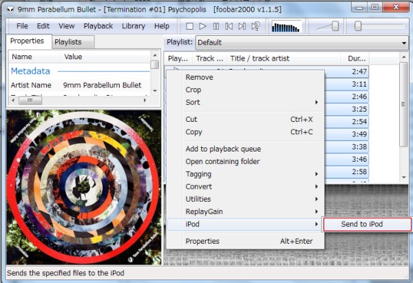 foobar2000のコンポーネントのひとつであるiPod managerを使うと、foobar2000から