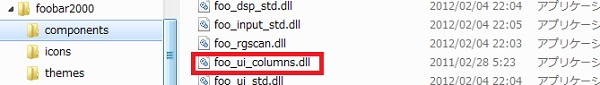 foobar2000のインストールフォルダのcomponentsフォルダにfoo_ui_columns.dllを