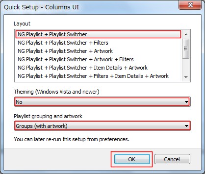 初回にQuickSetupが表示されると思いますのでとりあえず上のように設定します。
