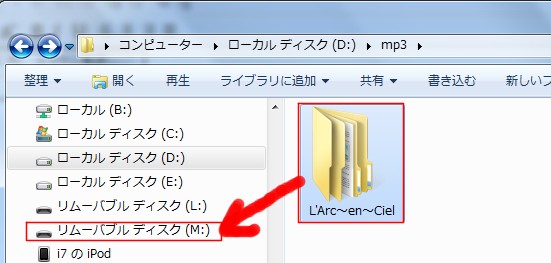 あとはリムーバルディスク上に作成したMP3をドラッグ&ドロップして